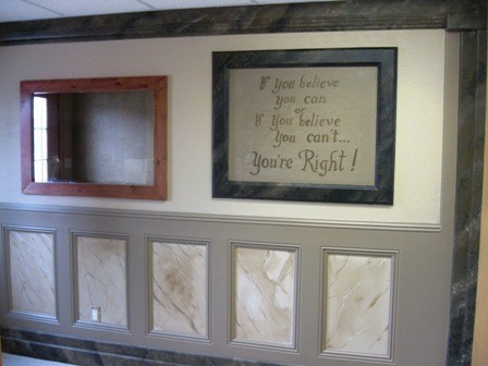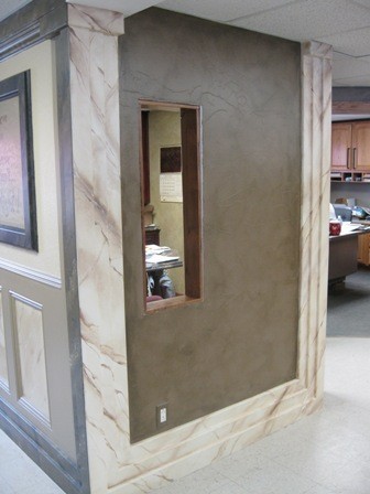These are pictures of our office and other projects finished with Trim-Tex drywall products. The pictures below, each have a different drywall texture. This is all made out of Sheetrock, Trim-Tex Products, & Paint! Trim-Tex ONLY manufactures the plastic mouldings that are applied to the drywall. Design, texture, & Paint are all done by hand.